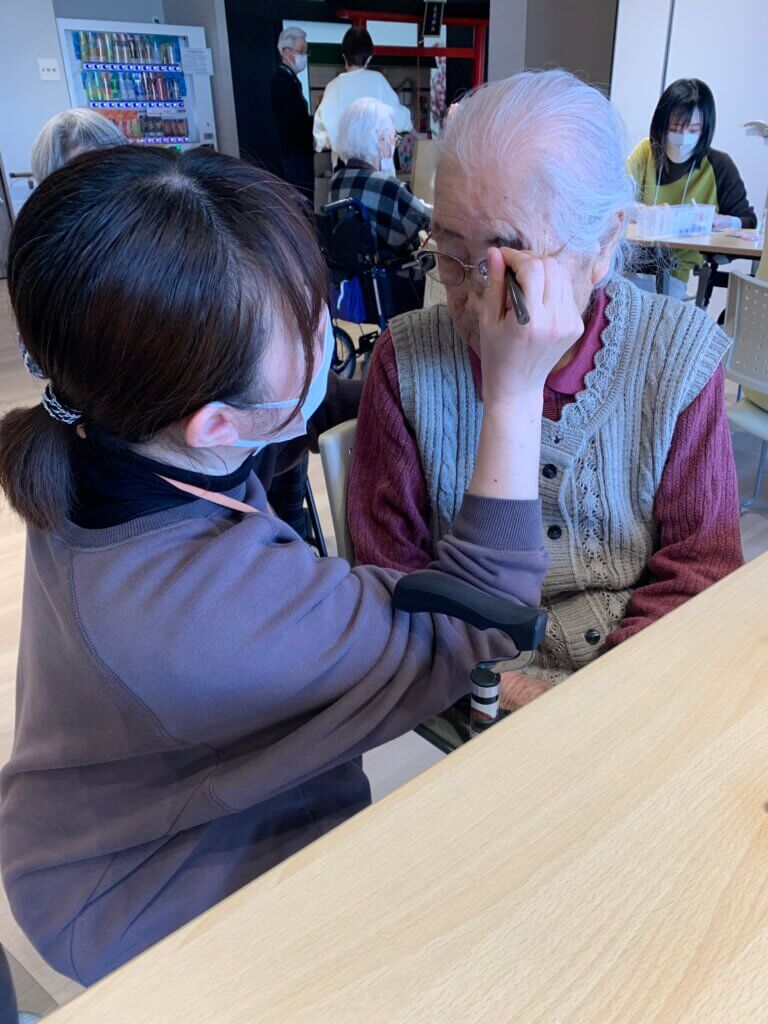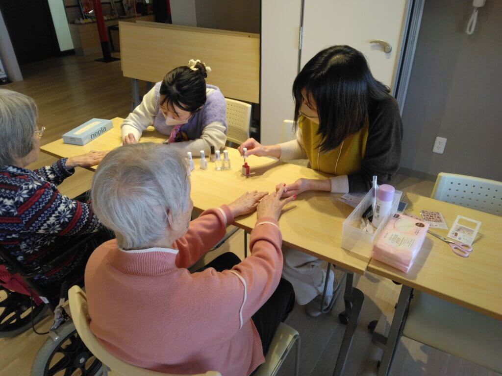 ボランティアさんにお手伝いいただき、ネイル&メイクサロンオープン✨お好きな色を選んでいただき、キラキラのネイルシールも使って仕上げました。