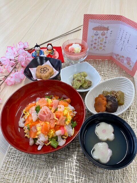 ひな祭り3月 15, 2026 | アーバンライフ・ネクステ春の訪れを感じる季節となりました。施設内にひな人形を飾り、やさしく華やかな雰囲気に包まれました。お昼はおひなさまメニューを楽しんでいただきました🌸 #前の記事へ 次の記事へ$ 関連記事 【DS&SS】 【特養】フルート演奏会 節分 令和8年 新年会 【SS】サックス演奏会